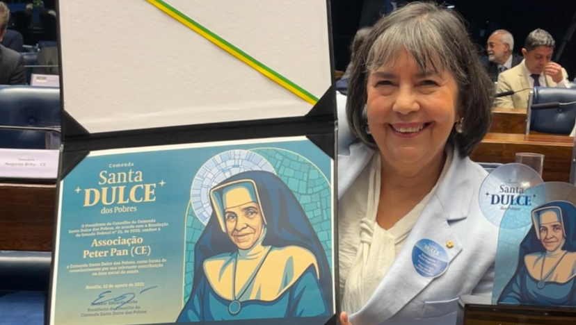Na última terça-feira (12), a Associação Peter Pan viveu um momento especial ao receber, no Senado Federal, a Comenda Santa Dulce dos Pobres, honraria concedida anualmente a pessoas e instituições que prestam relevantes serviços na área da saúde. Na ocasião, Olga Freire, fundadora da instituição, representou toda a equipe na solenidade.