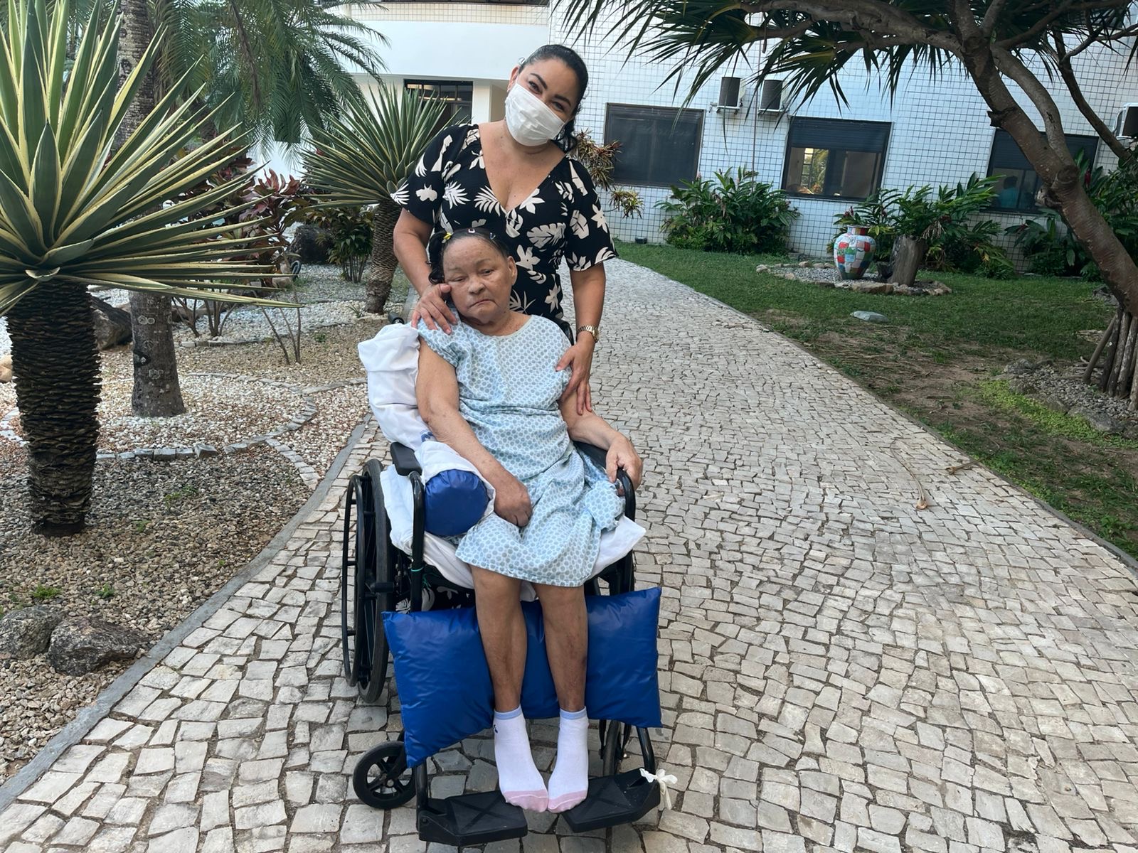 Erika Falcão cuida da mãe, Cleide, que está em tratamento de sequelas de AVC; a expectativa é voltar logo para casa
