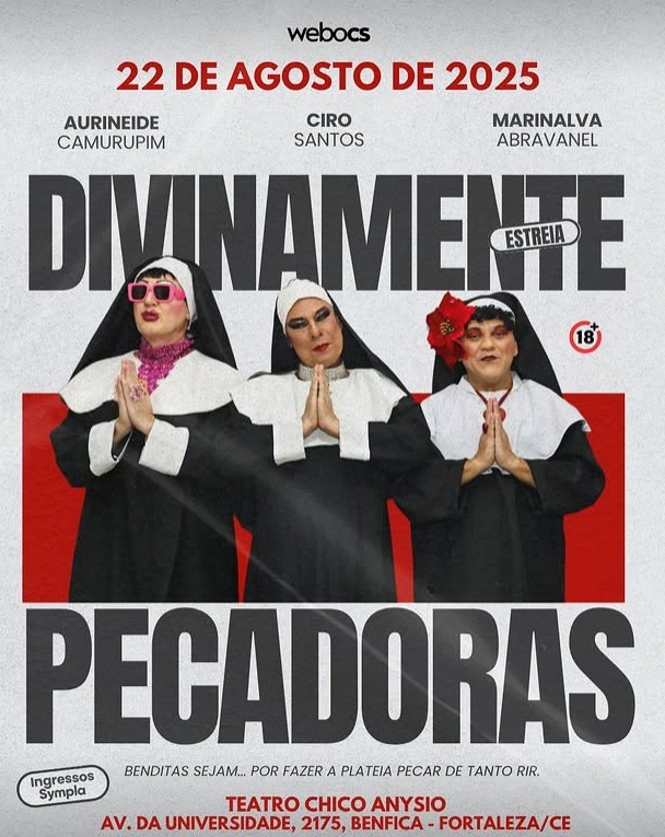 Sem papas na língua e com o DNA do humor cearense pulsando forte, Divinamente Pecadoras trata da vida como ela é, só que mais engraçada, mais escrachada e com muito mais brilho.