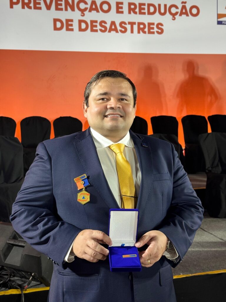 Em cerimônia na noite desta segunda-feira, 13, em Fortaleza, o presidente do Crea-CE, engenheiro Fernando Galiza, recebeu a Medalha Proteção e Defesa Civil de Fortaleza ao lado do prefeito, Evandro Leitão e do Tenente-Coronel Haroldo Gondim, coordenador da Defesa Civil. O evento marcou a abertura da Semana Municipal de Prevenção e Redução de Desastres (13 a 19/10), realizado nos jardins da Coordenadoria Municipal de Proteção e Defesa Civil (DCFor). Na ocasião, foram homenageados servidores e gestores municipais por seus trabalhos em parceria com a Defesa Civil de Fortaleza, recebendo a comenda em reconhecimento às ações conjuntas em prol da proteção da cidade.