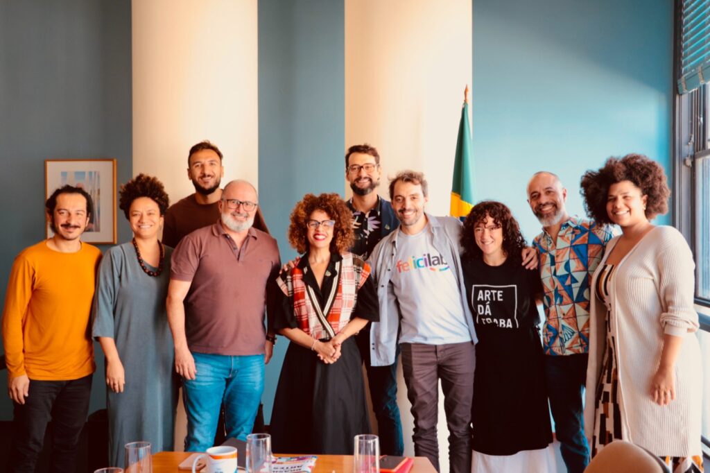 Integrantes do Laboratorio do Futuro e da Funarte Lucas Pirola, Aline Vila Real, Renato Ruiz, Ângelo Brayner, Maria Marighella, Léo Lessa, Uirá Porã, Luisa Hardman, Paulo Barros e Laís Santos