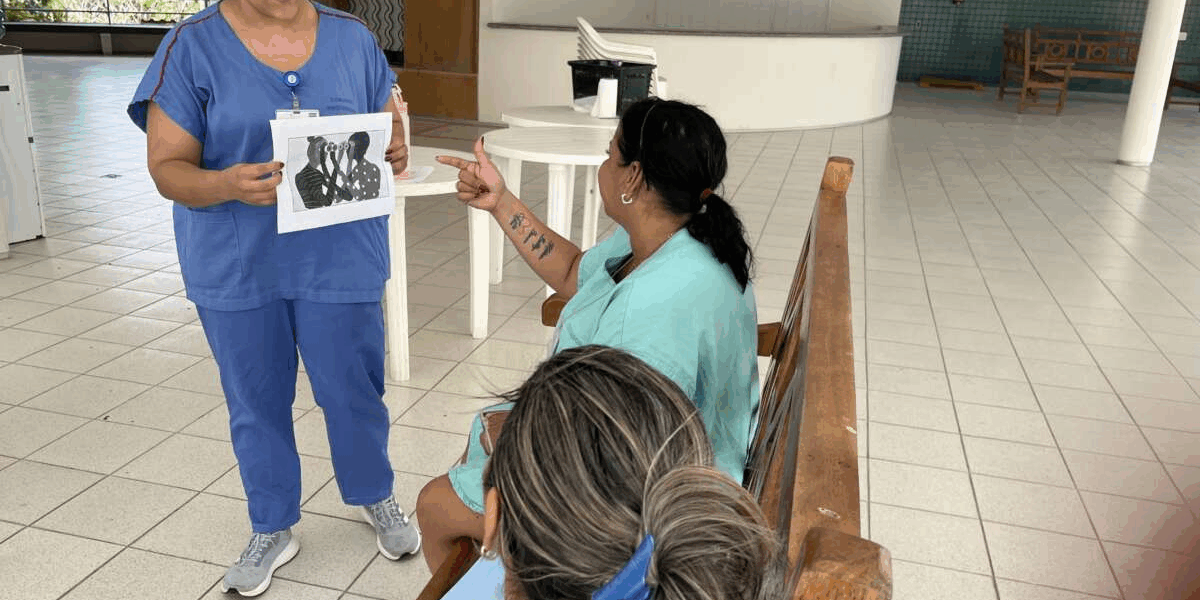 O grupo “Volta por Cima”, que tem o intuito de abordar reflexões sobre projetos de vida aos pacientes em reabilitação por tuberculose, promoveu roda de conversa mediada por imagens, com o tema “Feridas emocionais e caminhos de cura” com a psicóloga Sarah Gomes.