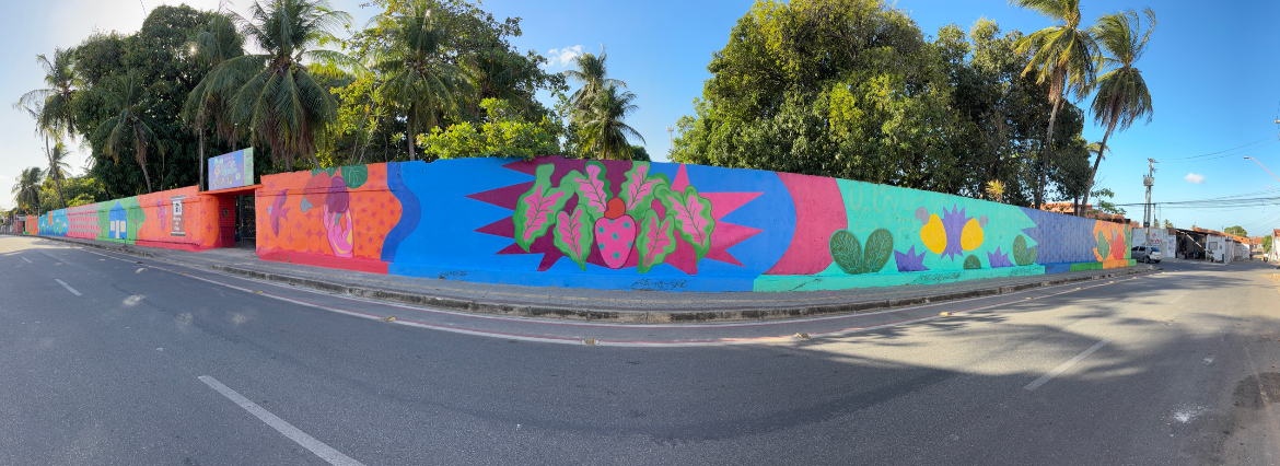 O projeto envolveu a pintura de um mural em uma parede de 100 metros que nasceu de uma obra que celebra história, afeto e pertencimento