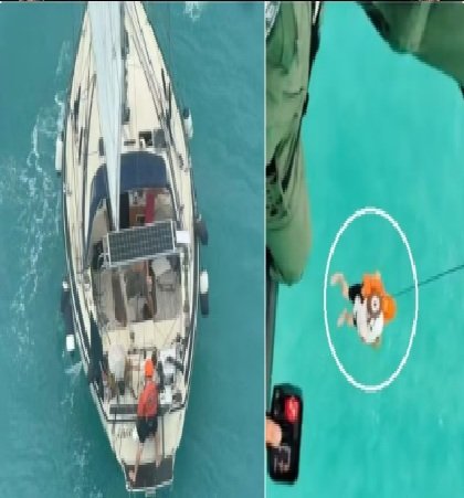 Com isso, a equipe de resgate usou um guincho elétrico para retirar a mulher do veleiro e levá-la para a aeronave.