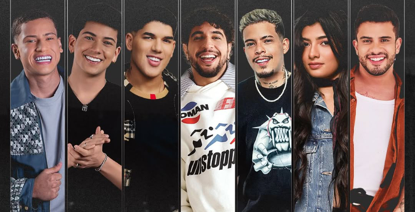 Nattan, Zé Vaqueiro, Felipe Amorim, Ávine Vinny, Leo Foguete, Manin Vaqueiro e Talita Mel participam do show pós-corrida Vybbe Run