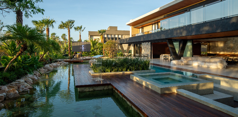 No projeto, a Casa Ciganos 2 reúne 6 suítes, academia, home cinema, 4 vagas cobertas de garagem, além de um amplo setor de lazer com piscina e lago com cascatas, em diálogo direto com o paisagismo de Thiago Borges. O resultado é uma casa-refúgio pensada para receber, confraternizar e viver intensamente cada momento, com luz natural abundante, ventilação estratégica e uma relação constante com o entorno — um projeto que, ao ser entregue, não apenas concretiza o sonho dos novos proprietários, como também movimenta e eleva o conceito do mercado de luxo residencial no Ceará.